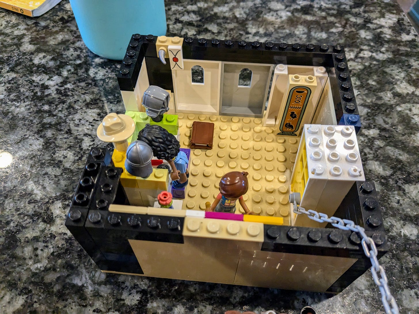 Two weeks ago, I came home from work to a newly-created Lego history lab. There were old tapestries, unearthed pottery, Egyptian hieroglyphs, and more in a neat little room. Ted and Mona and their friend (who at one point was “the learning princess Tiana” but may have since changed) were busy cataloging their artifacts.